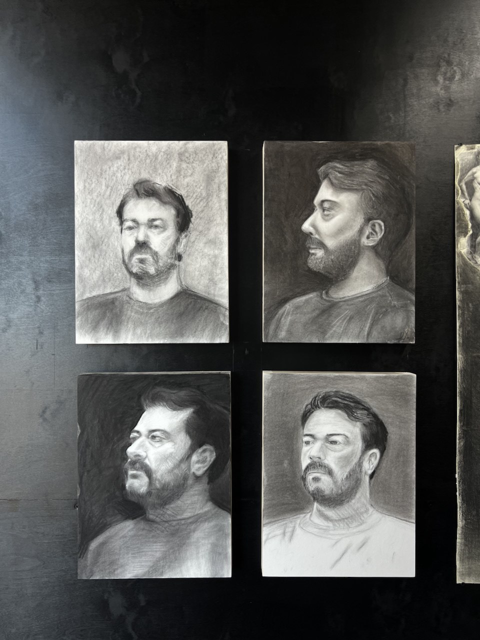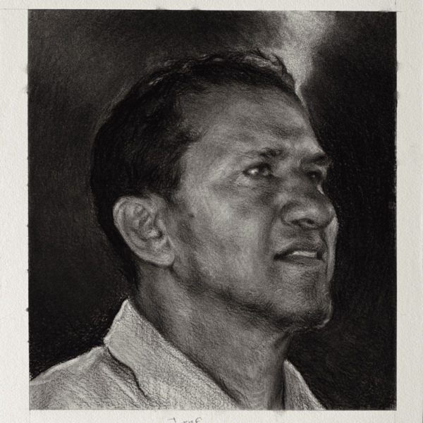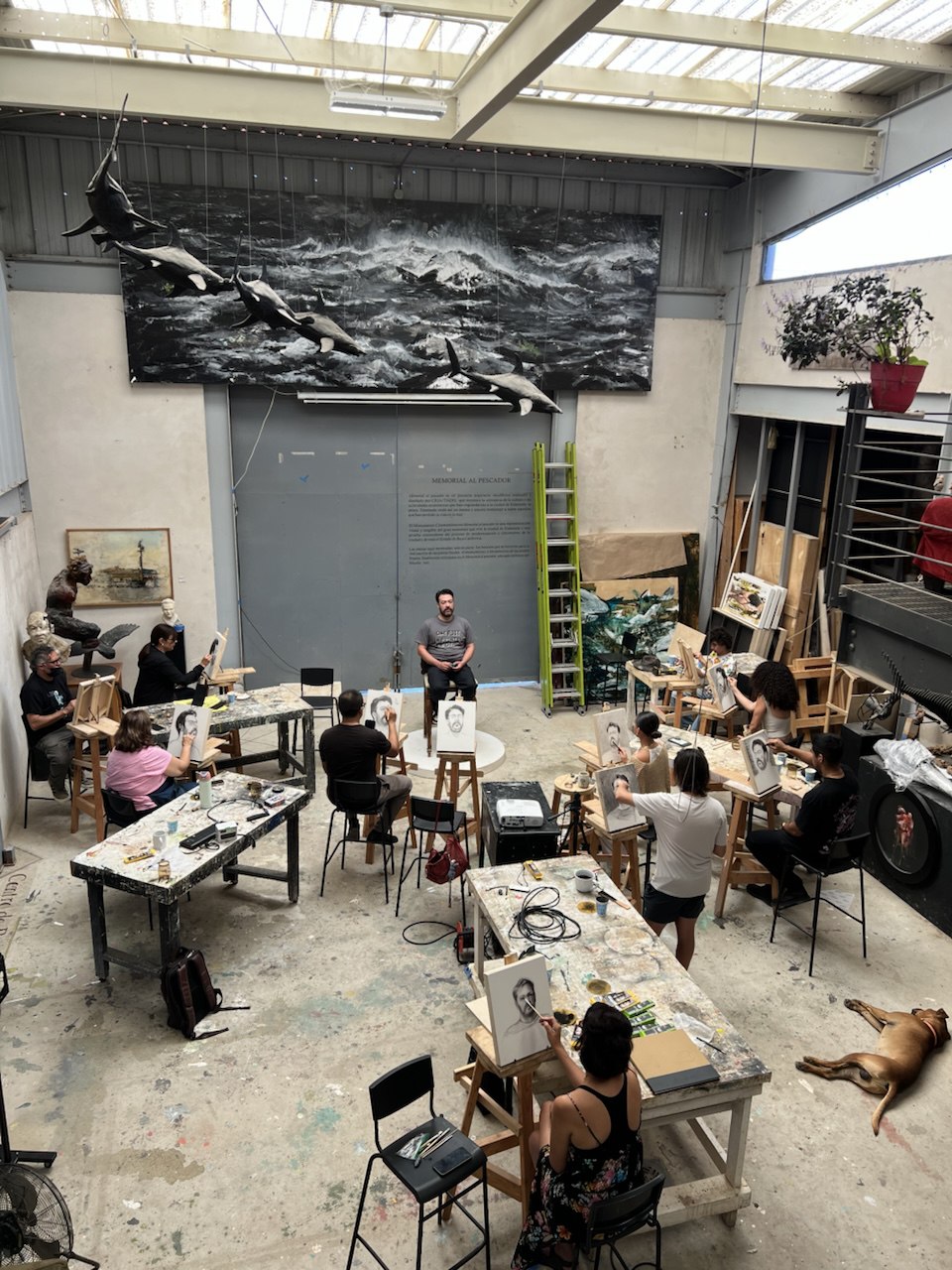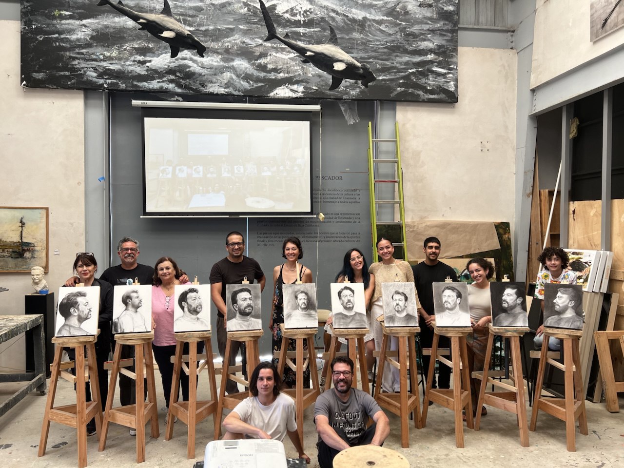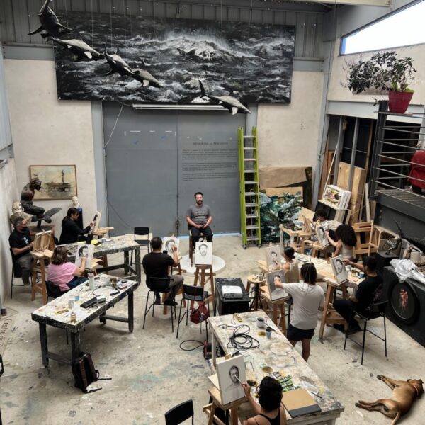 Cobos impartió un taller intensivo de tres días dirigido a un grupo reducido de participantes, enfocado en los fundamentos del retrato académico. A través del uso del carboncillo, exploraron proporción, estructura y valor tonal, culminando en una muestra colectiva y la retroalimentación del artista.