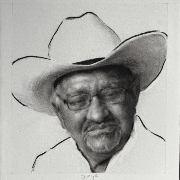 Como parte de su residencia en el CRIA, Jorge Cobos realizó una serie de retratos por encargo como parte de su práctica artística. Estas piezas no sólo reflejan su dominio técnico, sino también una aproximación paciente e íntima al acto de observar.