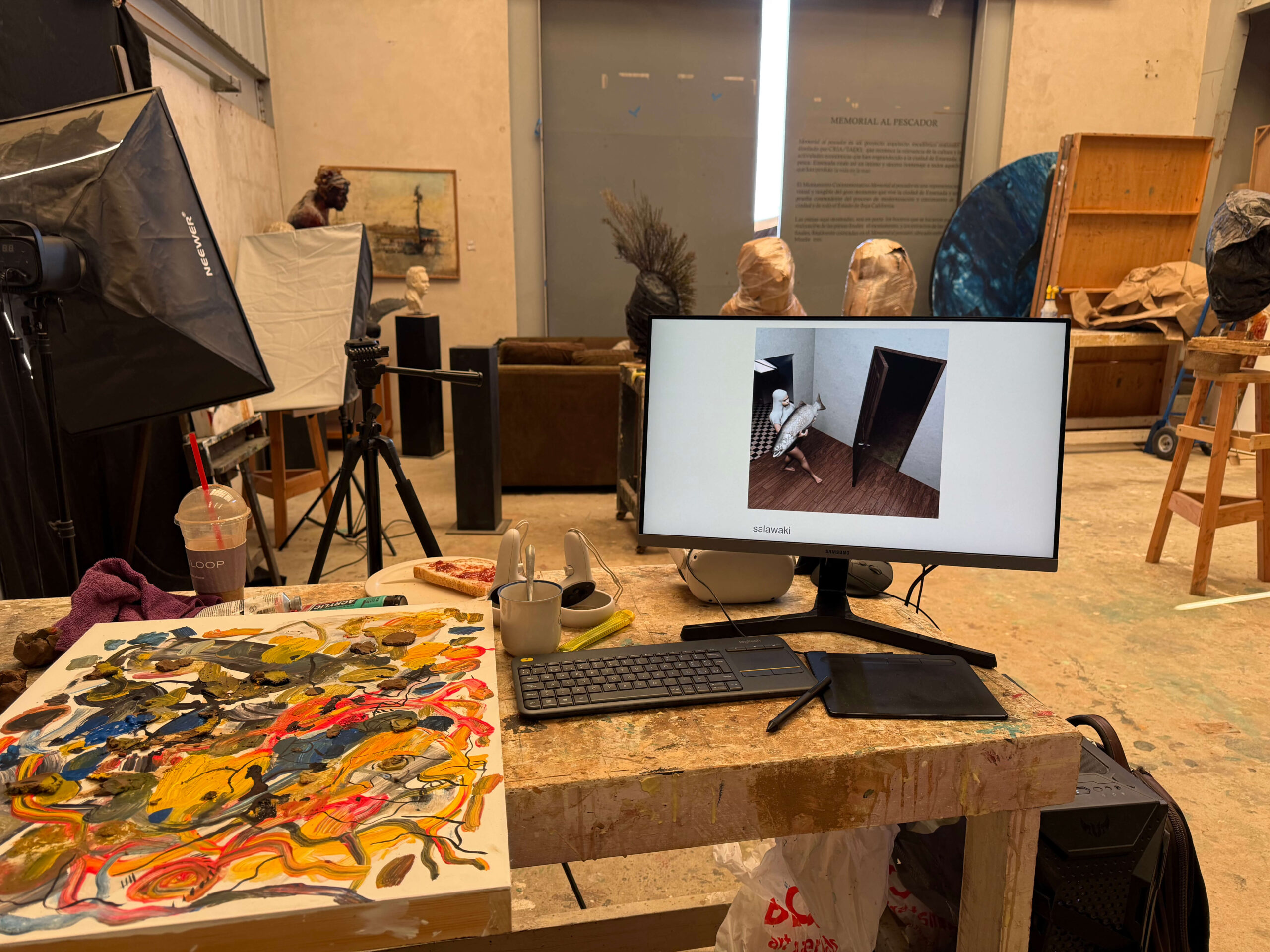 Durante su residencia en el CRIA, en noviembre de 2025, el artista produjo trece pinturas en un periodo de trabajo concentrado. La residencia contó con el apoyo logístico y la participación de LKMX en la selección del artista.