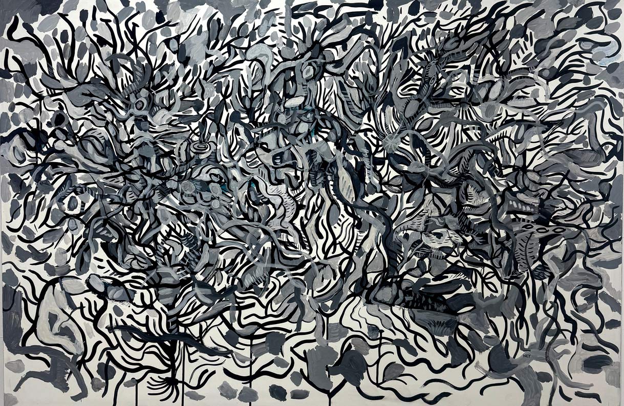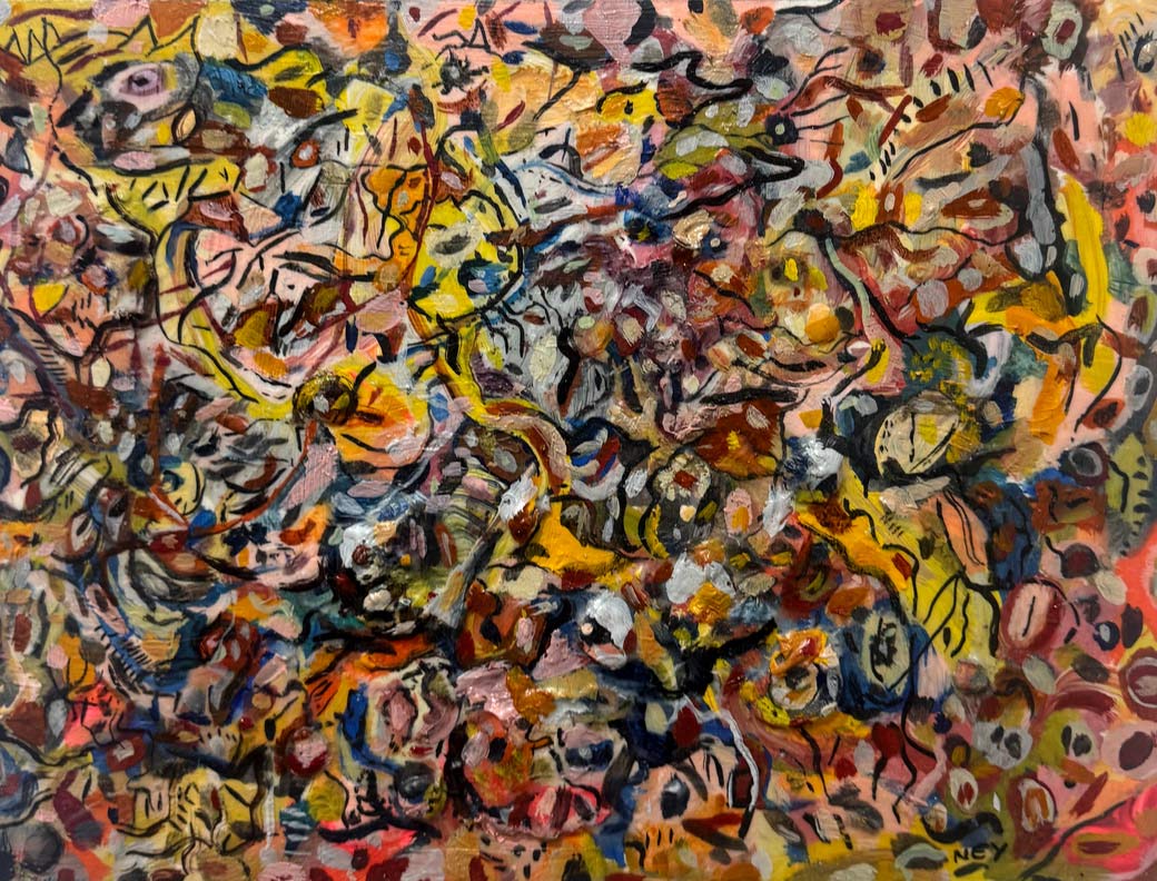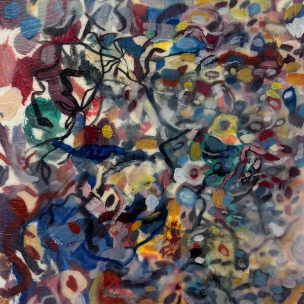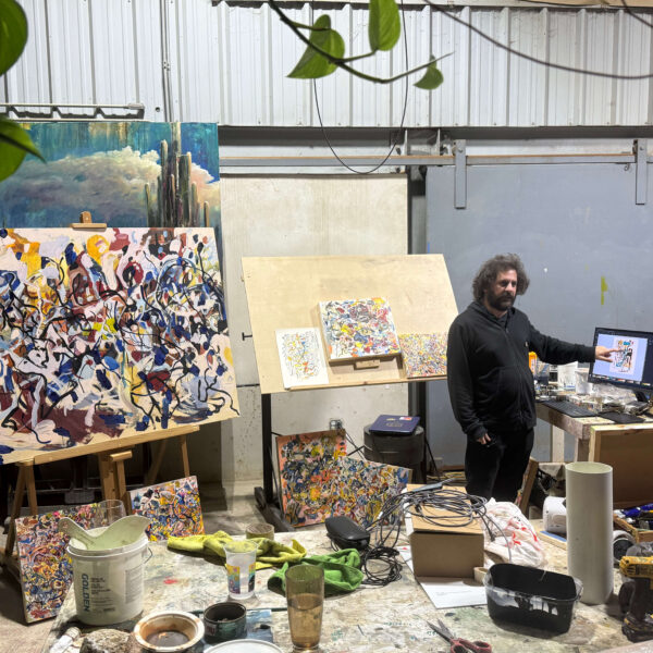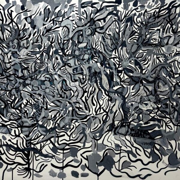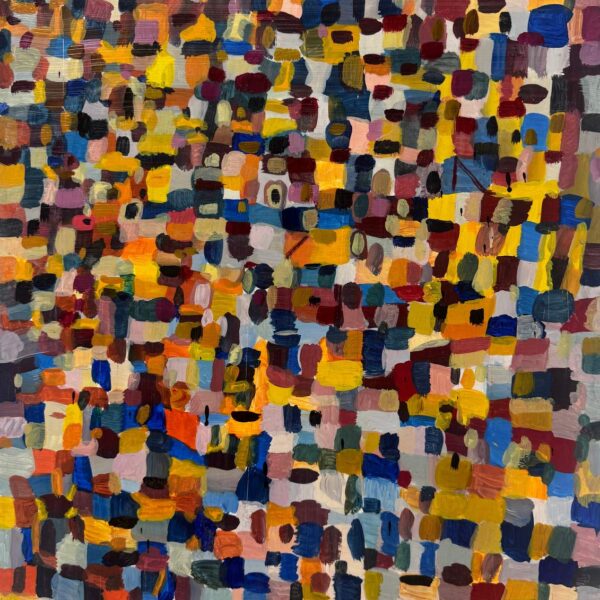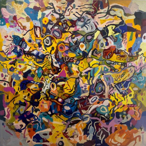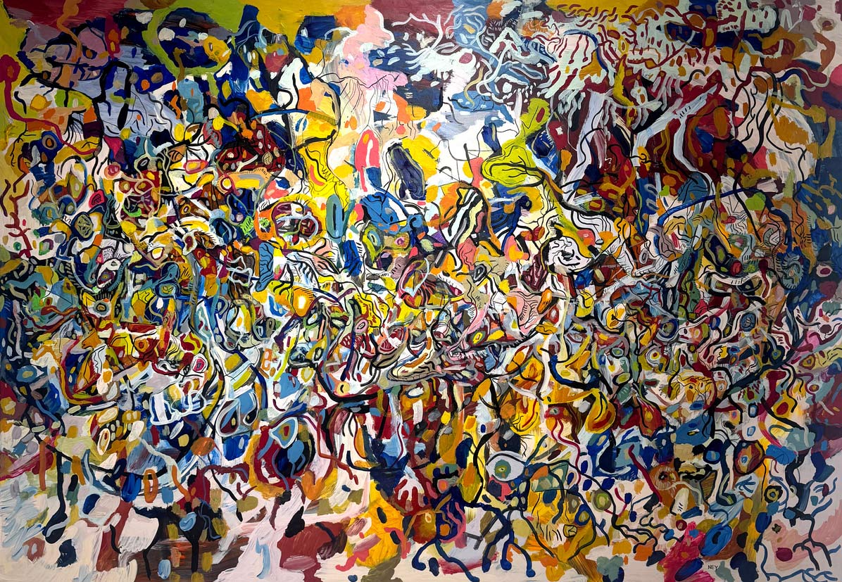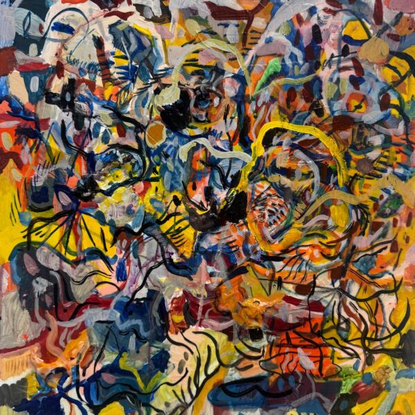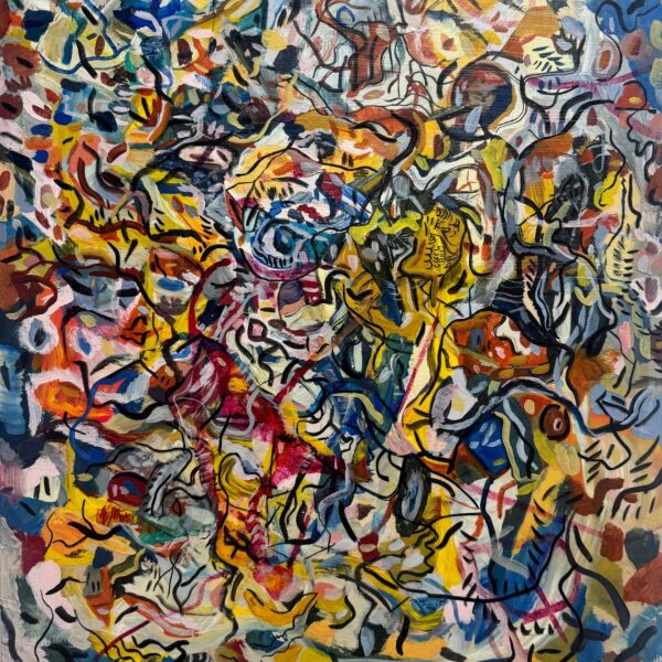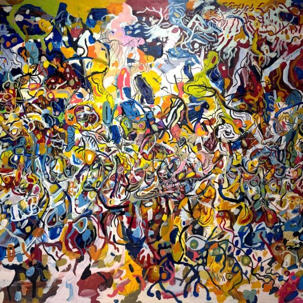 Las obras reunidas en Tiempo lateral surgen de una práctica que articula pintura y procesos digitales. Aunque el trabajo del artista se ha desarrollado principalmente en el ámbito del arte digital y los NFTs, la pintura funciona aquí como origen material, campo de prueba y punto de retorno.